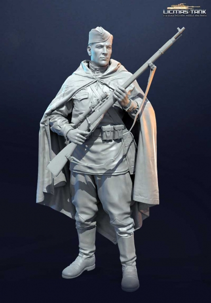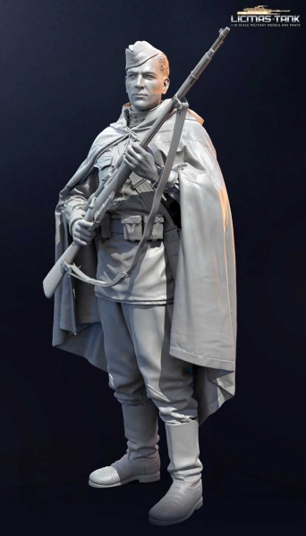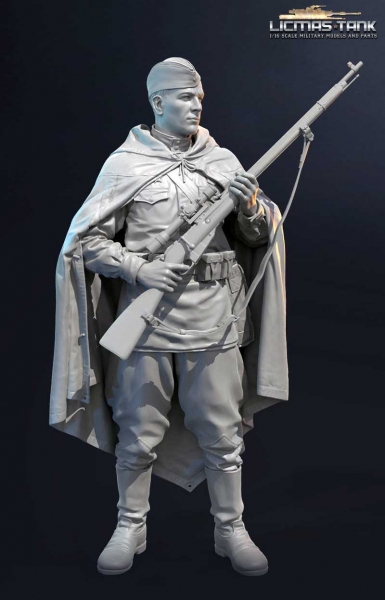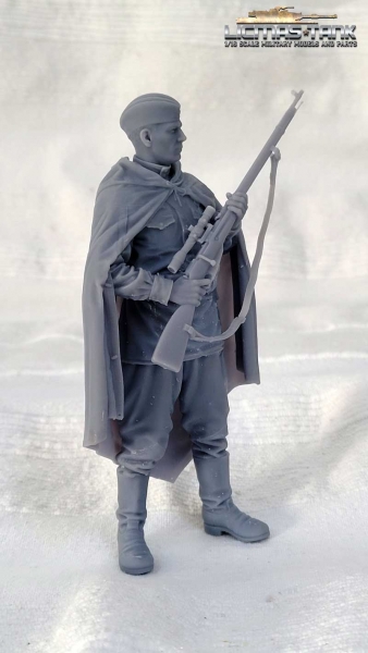 1/16 Figur Russischer Scharfschütze mit Umhang und Kappe unbemalt aus Resin