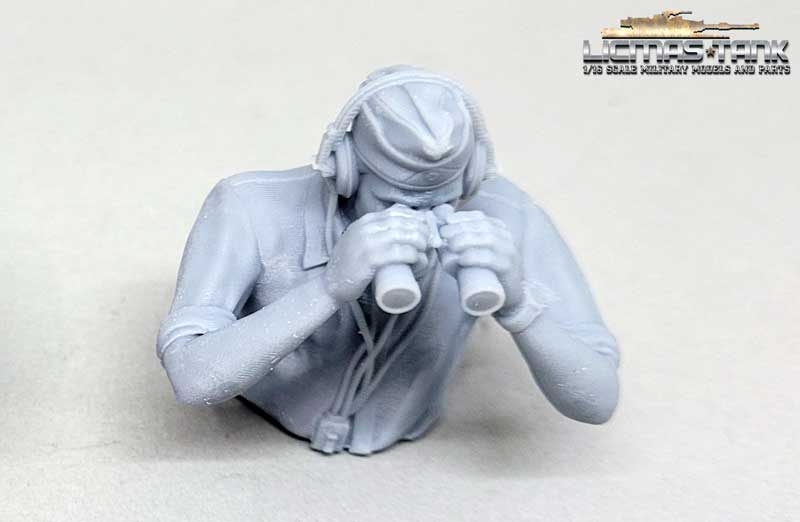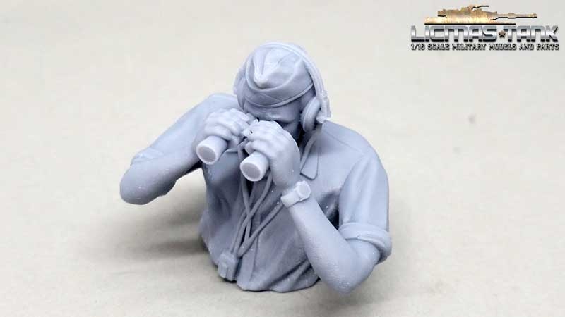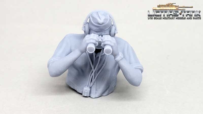 1/16 Deutscher Panzersoldat mit Kopfhörern durch Fernglas schauend WW2 unbemalt aus Resin