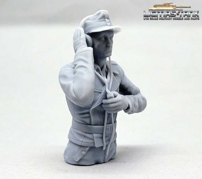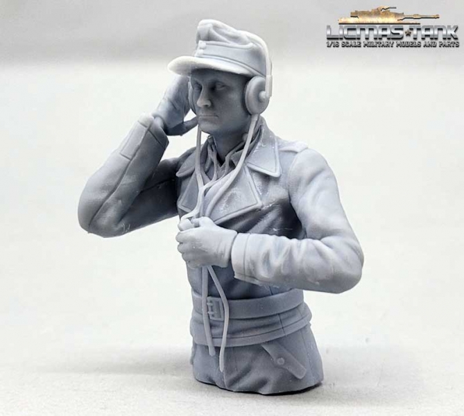 1/16 Figur Deutscher Panzerkommandant Otto Carius mit Feldmütze unbemalt aus Resin