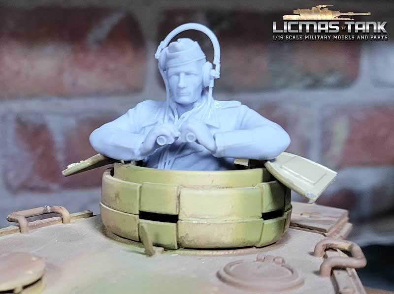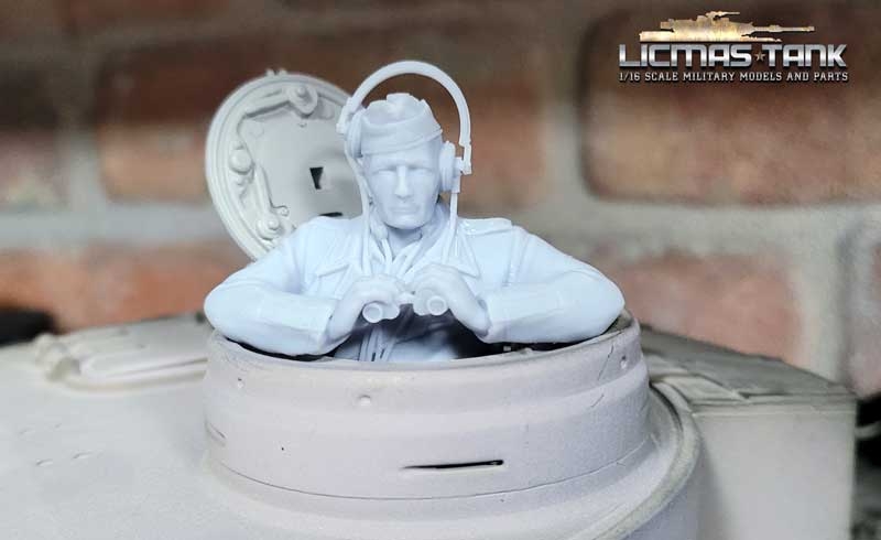 Die Figur ist einem echtem Panzersoldat (Kommandant) mit Kopfhörern im Turm,