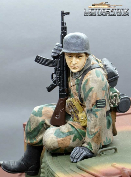1/16 Figur Soldat WW2 Splittertarn deutscher Tank Rider StG 44 Schütze Wehrmacht handbemalt