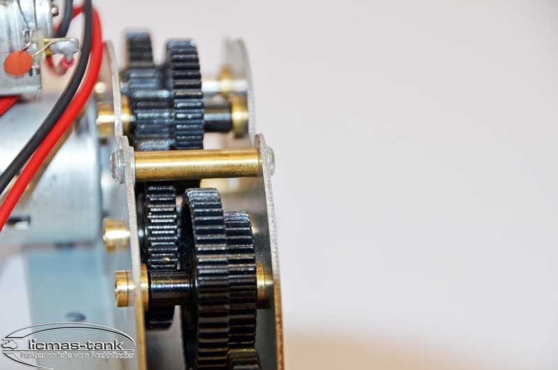 - Alle Zahnräder sind aus Metall und Messingbuchsengelagert