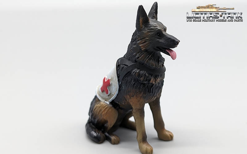 1/16 Figur deutscher Sanitäts-Schäferhund WW2 bemalt aus Resin