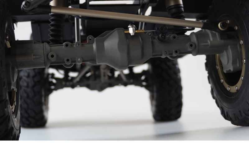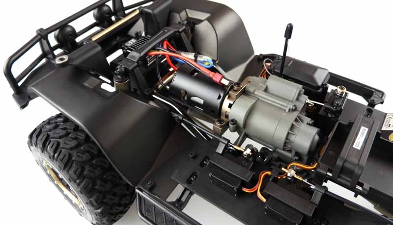 Dieser Top Crawler im Maßstab 1:8 vereint super Technik mit genialen Fahreigenschaften. Ausgestattet mit einem massiven 5mm starken Metallrahmen, Portalachsen, Metall Linkages, Metall Antriebswellen, hochwertigen komplett geschützten Öldruck Stoßdämpfern mit Staubschutz, 650er Bürstenmotor 23T, einem gedämpften Lenkungssystem, einzeln über Sender sperrbare Differentiale (vorne / hinten) und 2 - Gang Schaltgetriebe lässt diese Fahrzeug kaum Wünsche offen. Dieses Fahrzeug ist eine komplette Neuentwickelung und bringt einige neuartige Systeme zum ersten Mal auf den Markt.