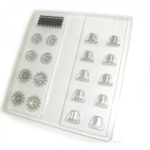 Bausatz C6602K mit Teilen zum Bau eines RC-fähigen-Modells, bestehend aus Panzermodell T55 mit 2 Getrieben (mit Motor), Kanonenrohr Höhenverstellung, Rohrrückzug. Elektronische Teile wie z.B. Fernsteuerung, Hauptplatine, Klebstoff, Farbe sind nicht enthalten.