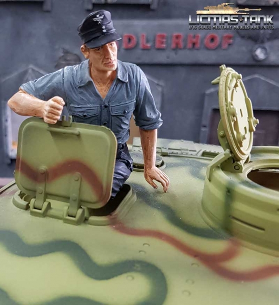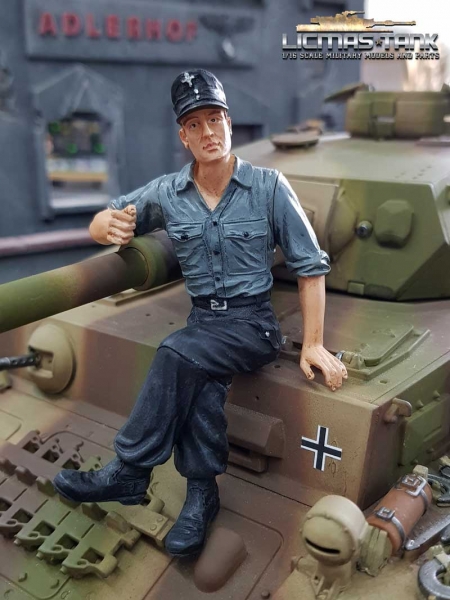 BWARE 1/16 Figur deutsche Panzerbesatzung Soldat mit Hemd und Feldmütze mit ansteckbaren Beinen