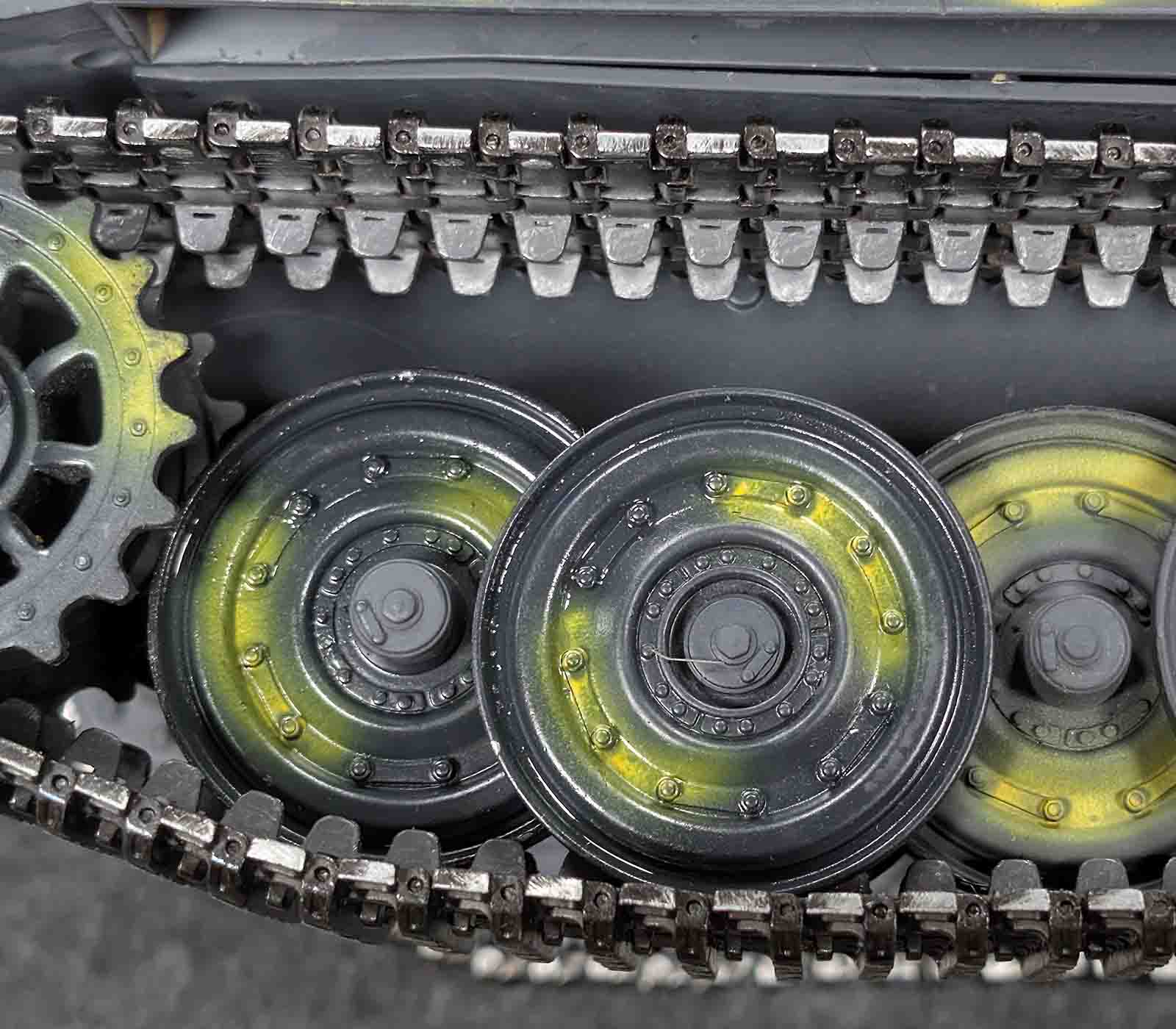 - Metallketten und Laufrollen der späten Version: Robust und ideal für Geländefahrten.
