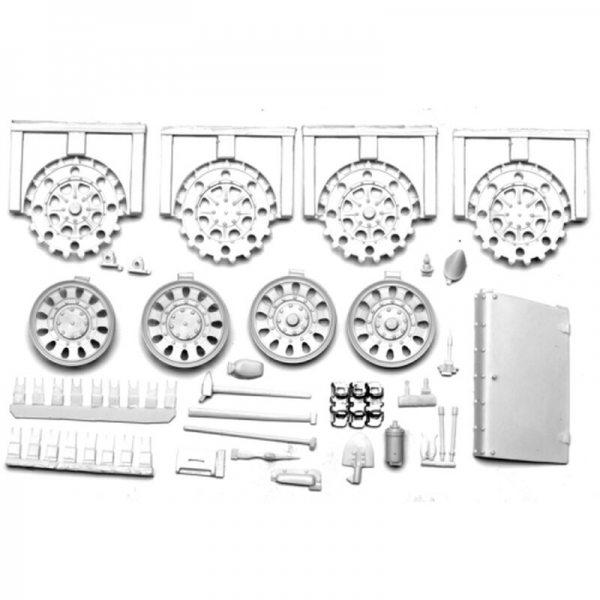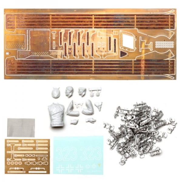 - Im Bausatz sind die Metallketten und diverses Zubehör (Aufkleber usw.) enthalten.