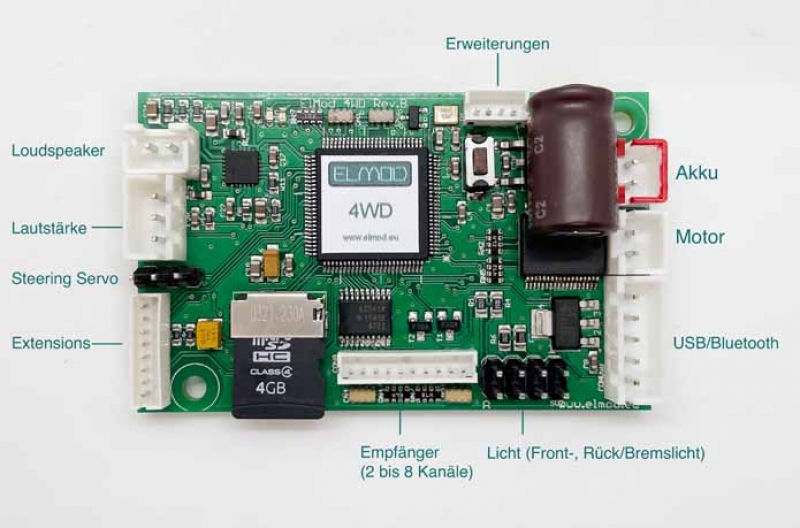 - Alle mitgelieferten Samplesets befinden sich auf einer vom PC/Notebook lesbaren microSD-Karte und werden zur Laufzeit über die ElMod App ausgewählt