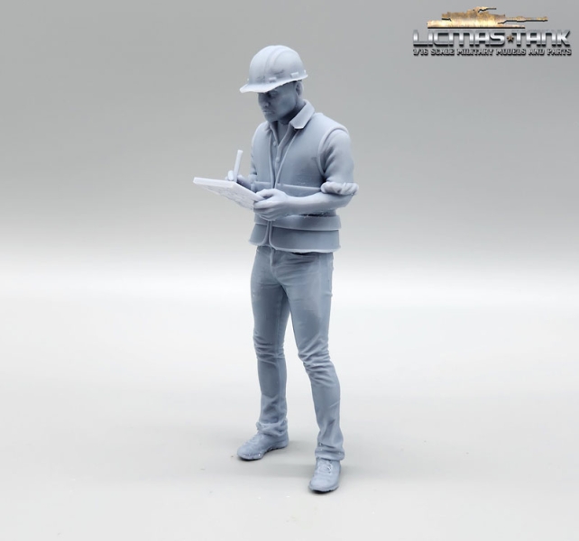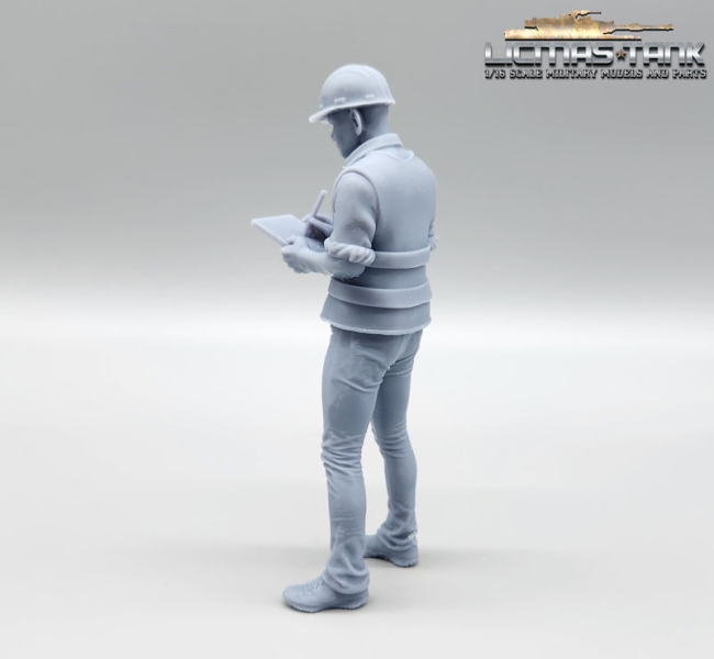 Figur 1/14 Vorarbeiter mit Warnweste und Schreibklatte aus Resin Lkw Truck Nutzfahrzeuge Baustelle Modellbau