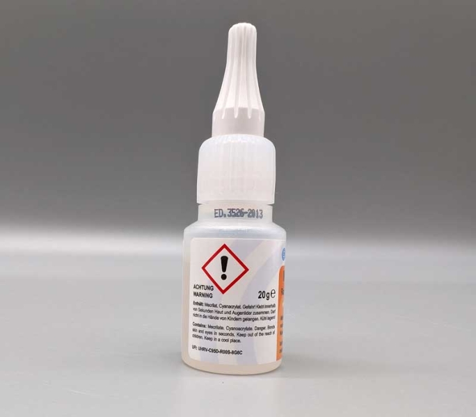 ⚠️ Hinweis: Cyanacrylat klebt Haut und Augenlider innerhalb von Sekunden. Bitte vorsichtig verarbeiten und stets kindersicher aufbewahren.