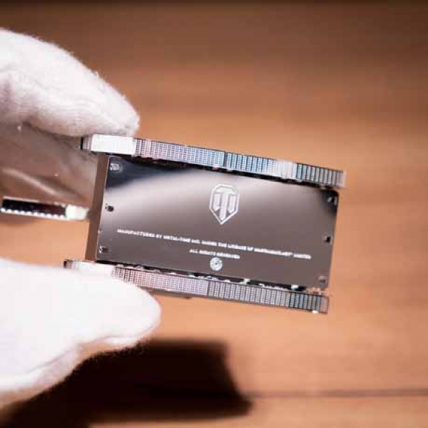 Das Selbstbaumodell "AMX-13/75" - Ein Produkt der Zusammenarbeit von "Wargaming" und "Metal Time Workshop". Auf der Unterseite des Modells befindet sich das Logo "WoT" und jedem Set liegt ein Bonuspaket von "Wargaming" bei. Es enthält den Aktivierungscode des Spiels, mit dem Sie beginnen können, die beliebteste Online-Panzer-Strategie zu spielen, sowie "T2" leichte Panzer + Slot + 7 Tage "WoT" Premium-Konto + 500 Gold. Ein großartiger Start für einen Anfänger Online-Panzer-Spieler!