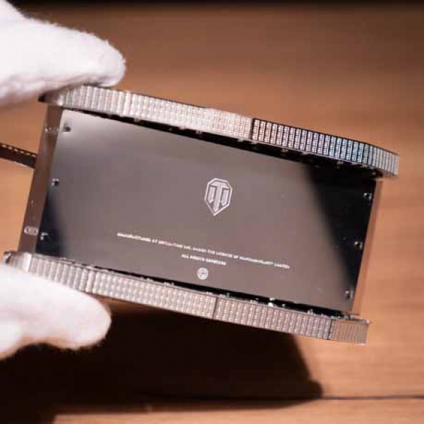 Das Selbstbaumodell FV 214 "Conqueror" ist ein Produkt der Zusammenarbeit von "Wargaming" und "Metal Time Workshop". Auf der Unterseite des Modells befindet sich das Logo "WoT" und jedes Set wird mit einem Bonuspaket von "Wargaming" geliefert. Es enthält den Aktivierungscode des Spiels, mit dem Sie beginnen können, die beliebteste Online-Panzer-Strategie zu spielen, sowie "T2" leichte Panzer + Slot + 7 Tage "WoT" Premium-Konto + 500 Gold. Ein großartiger Start für den Neuling im Online-Panzerspiel!