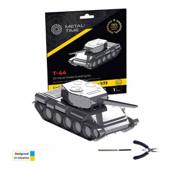 Das "T-44"-Modell weist das erkennbare Design des legendären mittleren Panzers auf: ein einzigartiges Profil, Turm, Fahrgestell, Luken, Kühlergrill und Bewaffnung. Texturen und Bilder werden durch elektrochemisches Ätzen auf die Oberflächen aufgebracht, wodurch das Modell dem Original-Kampffahrzeug ähnelt. Alle Modellteile sind aus rostfreiem Stahl gefertigt, der in der Lebensmittelindustrie, bei Konsumgütern und in der Spielzeugherstellung verwendet wird. Der Zusammenbau des "T-44" schließt eine Gefährdung des Besitzers aus. Der exakte Zuschnitt ermöglicht den Zusammenbau des Modells ohne zusätzliches Werkzeug, Löten oder Kleben.