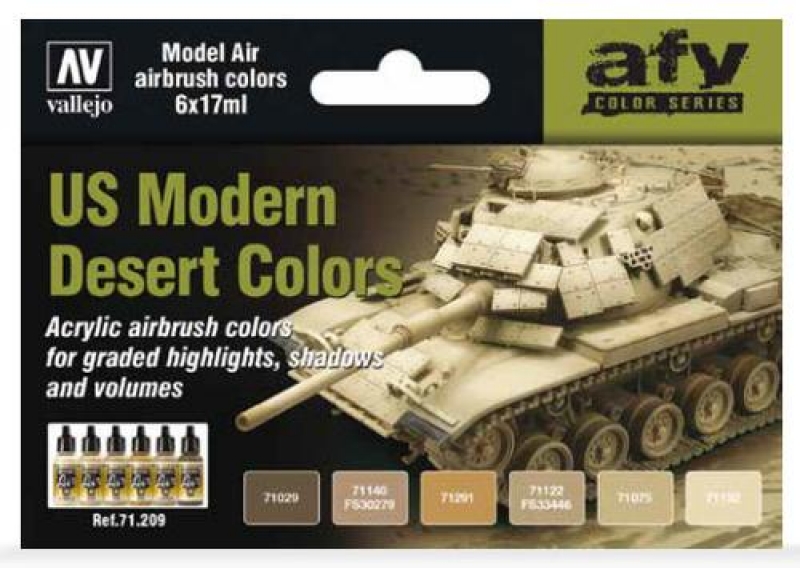 Dieses Farbset wurde dafür entwickelt, Licht- und Schatteneffekte sowie Tiefe auf modernen US AFV Modellen oder anderen Fahrzeugen in einer Wüstenumgebung zu erzeugen. Die enthaltenen Farben erlauben die Anwendung verschiedener Bemalkonzepte wie zenitales Licht oder Übergänge von dunklen Schatten bis hin zu helleren Tönen, die die Modelle plastischer erscheinen lassen. Im Set enthalten sind Erklärungen, die Schritt für Schritt den Prozess des Bemalens und Akzentuierens erläutern.