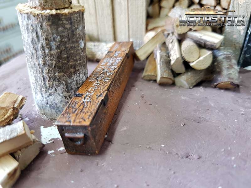 Die Munitionskiste ist wie abgebildet mit Aufschrift und schon lackiert!!!