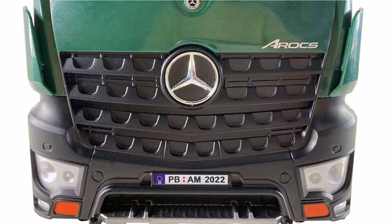 Lizenziertes Mercedes-Benz Arocs Fahrzeug mit Kranaufbau und Kippfunktion, das unsere anderen Lizenzmodelle aus der Arocs Kipper Serie (selber Maßstab 1:14) ergänzt und nicht nur durch seine Sonderlackierung optisch, sondern auch durch seinen Funktionsumfang besticht. Alle Fahrfunktionen und diverse Funktionen des Kranaufbaus (bis auf Drehen sowie Öffnen/Schließen des Greifers) sind vollproportional steuerbar. Zusätzlich liegt dem Set ein Schrottgreifer bei, der noch mehr Vielfalt beim Einsatz ermöglicht und Abwechslung garantiert. Beide Greifer, Holzgreifer und Schrottgreifer, lassen sich binnen kurzer Zeit austauschen. Das Fahrzeug verfügt über eine LED-Beleuchtung vorne und hinten, Blinker vorne und hinten sowie zwei gelbe Warnleuchten auf dem Dach, sodass auch bei Dämmerung stilecht gearbeitet werden kann. Darüber hinaus ist im Modell ein Soundmodul verbaut, welches die Fahrfunktionen realistisch wieder gibt, inklusive Rückfahrwarnton! An der Kippmulde können alle Seiten der Bordwand geöffnet werden, um z.B. auch längere Holzstämme zu transportieren. Abgerundet wird das Set durch den Lieferumfang mit Akku (7,4V LiIon 1200mAh), Ladegerät, hochwertigem 2,4GHz Sender und Montagewerkzeug inkl. Schraube für den zusätzlichen Schrottgreifer.