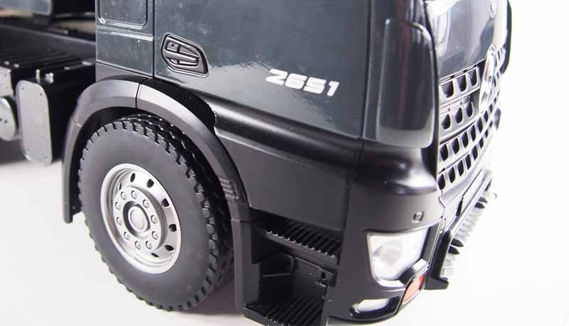 Die Arocs Baustellenfahrzeuge wurden erstmalig 2013 vorgestellt und sind seitdem auf vielen Baustellen weltweit zu finden. Leistungsstärke, Zuverlässigkeit und Robustheit zeichnen sie aus. Bei diesem lizenziertem Modell lassen sich fast alle Funktionen wie beim großen Bruder ansteuern.