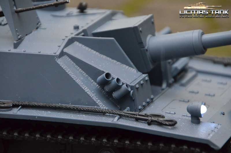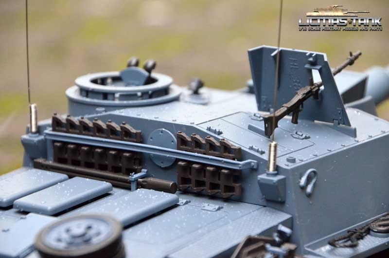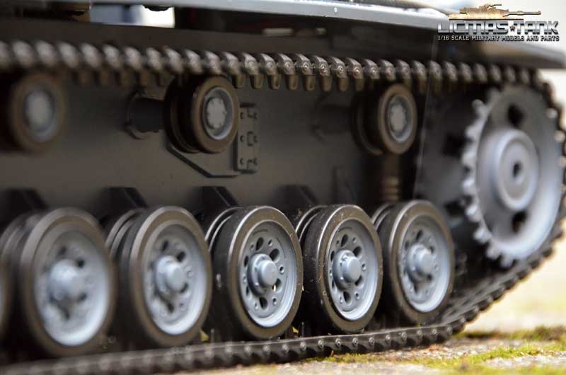 - Fernsteuerung: 2,4 GHz, vollproportional, störungsfrei, simultan mit mehreren Panzern nutzbar