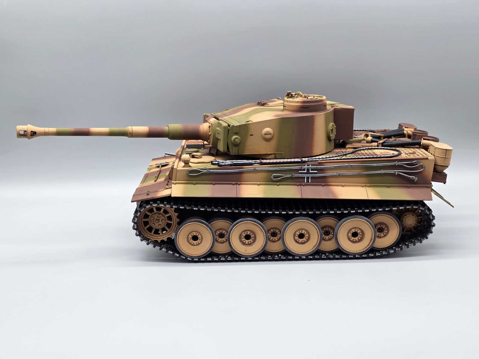 Produktinformationen "RC Panzer Tiger I Dreifarbtarn – Taigen V3 BB Servo Metall-Edition mit Kanonenrauch und 360° Turmdrehung"