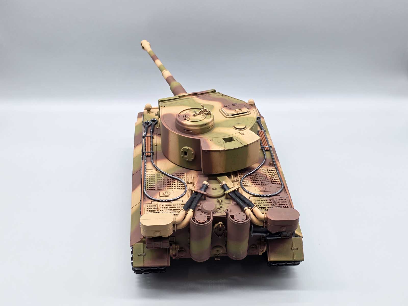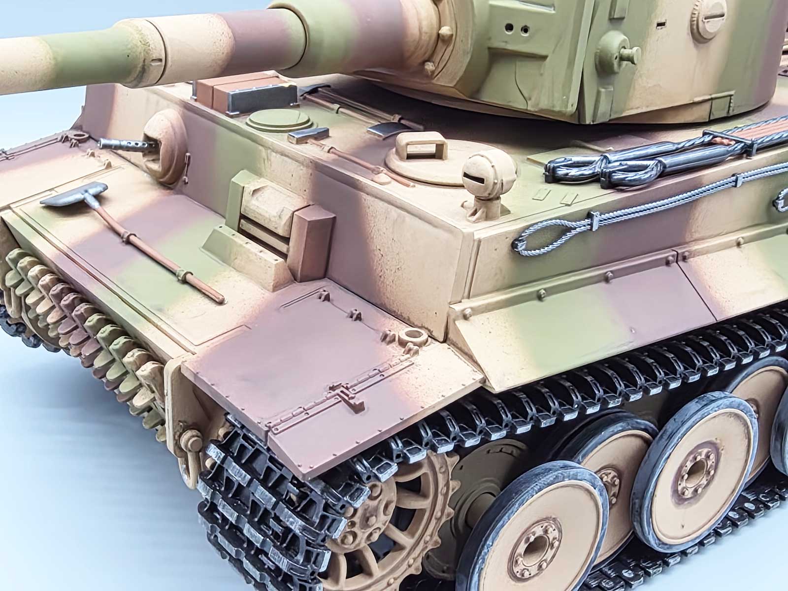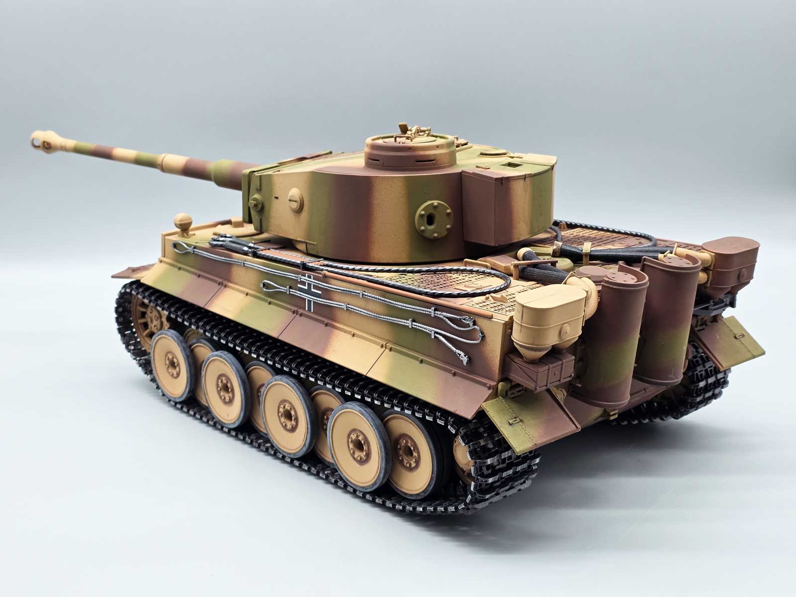 Produktinformationen "RC Panzer Tiger I Dreifarbtarn – Taigen V3 IR Servo Metall-Edition mit Kanonenrauch und 360° Turmdrehung"