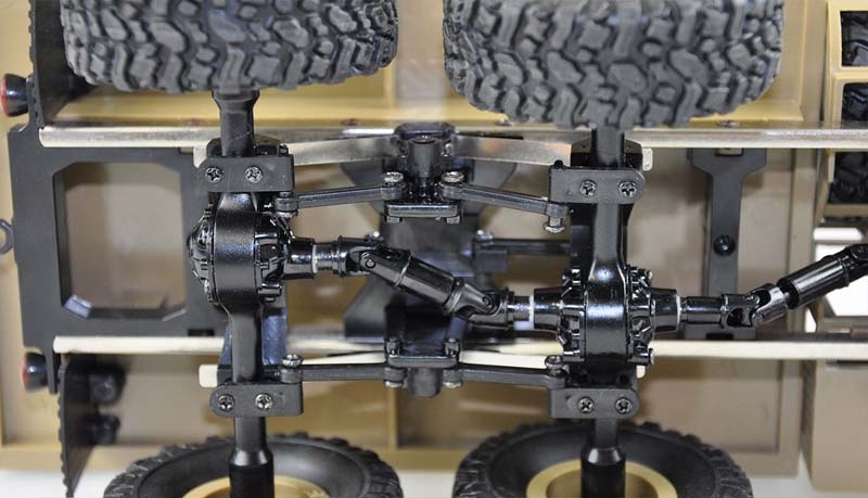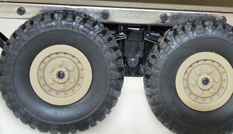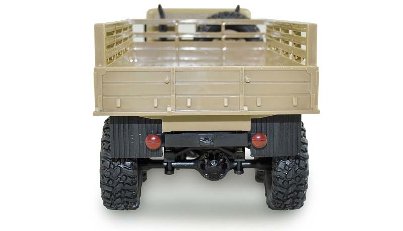 US Millitär Truck 6x6, M 1:16Dieser wunderschöne Nachbau eines Militär LKW's wurde der legendären und berühmten M35 Serie der US-Army nachempfunden. Er besticht durch eine schöne Optik, prima Fahreigenschaften, dem 6 x 6 Allradantrieb mit dem sogar Steigungen bis 30° bewältigt werden können und einem stabilen Rahmen aus Aluminium sowie richtigen Blattfedern. Der Semi-Scale Truck besitzt zudem echte Gummireifen und eine tolle LED Beleuchtung.