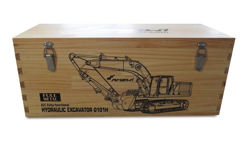 Hochwertige Verarbeitung gepaart mit hochwertiger Technik, so lässt sich dieses Modell am besten beschreiben. Der gesamte Aufbau besteht aus Metall und die Ausleger so wie das Arbeitsgerät (Schaufel) sind hydraulisch angetrieben. Das Fahrwerk wird mit brushless Motoren betrieben dabei ist für jedes Kettenrad links und rechts, je ein Motor zuständig. Auch die Hydraulikpumpe arbeitet mit einem brushless Motor. Somit steht immer genügend Kraft für anstehende Arbeiten zur Verfügung. Das Modell ist dabei sehr feinfühlig über den mitgelieferten 2,4GHz Sender mit Eurosteuerung (Knüppelbelegung wie im echten Bagger) bedienbar.