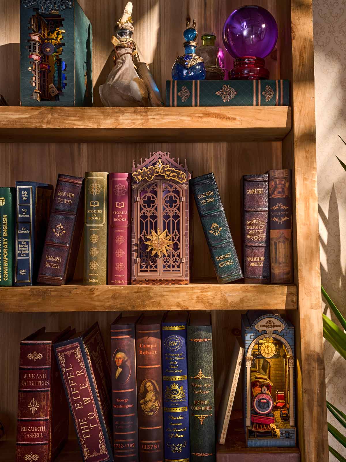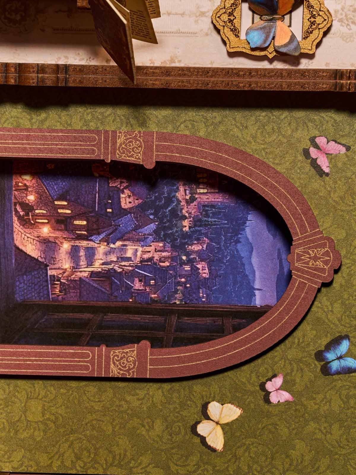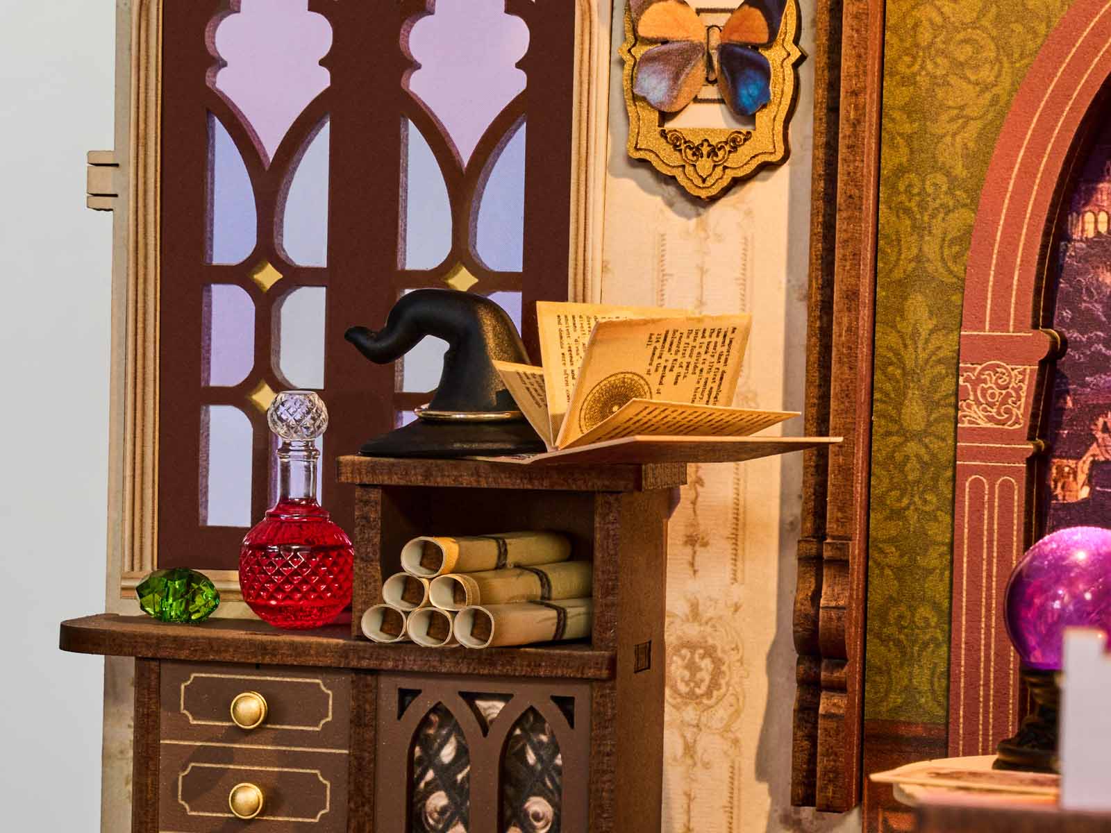 Verwandeln Sie Ihr Bücherregal in ein Portal voller Geheimnisse! Die Magische Fantasieecke von Rolife ist ein detailverliebter Regaleinsatz, der neugotische Architektur mit einer zauberhaften Atmosphäre kombiniert. Sobald das Licht angeht, erwacht die Welt der Zaubersprüche und Alchemie direkt zwischen Ihren Büchern zum Leben.