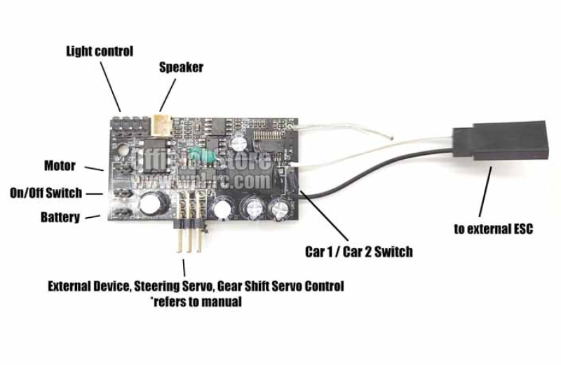 - Empfänger mit eingebautem ESC für den Hauptmotor (7A)