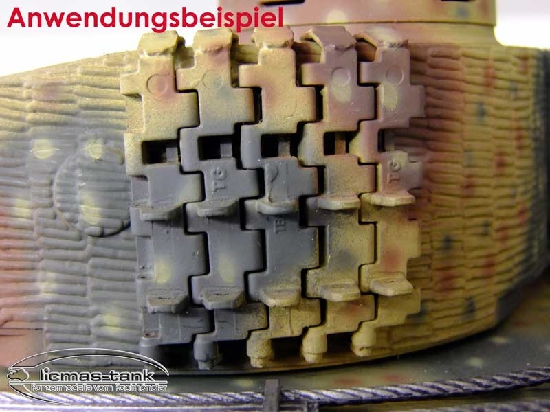 Tolles Produkt das sich sehr gut auf meinem Tiger I Frühe Version machen wird....einziger Gravierender Nachteil ist das die Kettenglieder nicht in Schwarz Lackiert sind. Es sind auch zum Glück keine Halterungen abgebrochen wie von meinen Vorrednern.