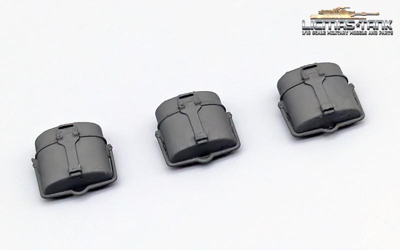 Dieses Zubehör-Set enthält drei Nachbildungen der deutschen Standard-Kochgeschirrs (Modell 31) aus Resin. Die Teile sind im Maßstab 1:16 gehalten und eignen sich zur Ergänzung von Figuren oder als Beladung für RC-Panzer und Fahrzeuge.