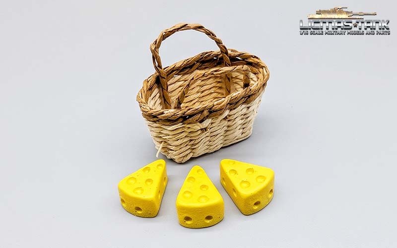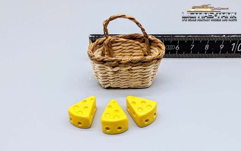 Product information "1/16 Braided straw basket with pieces of cheese for diorama"