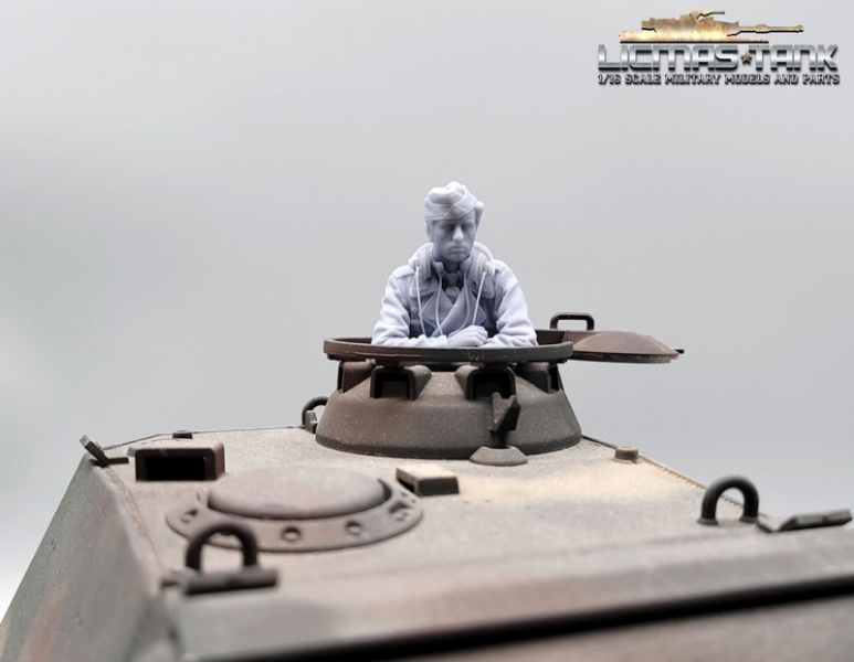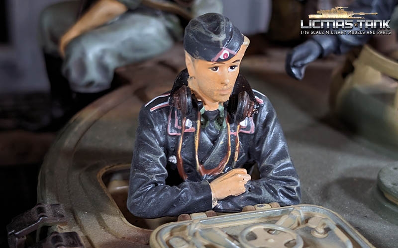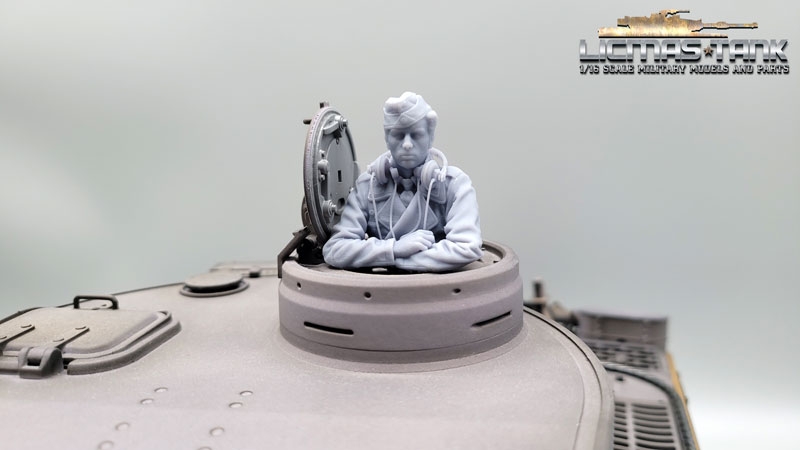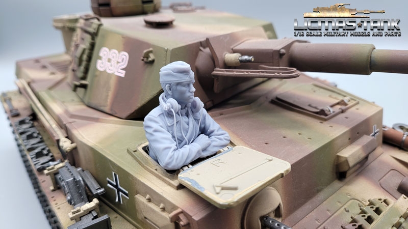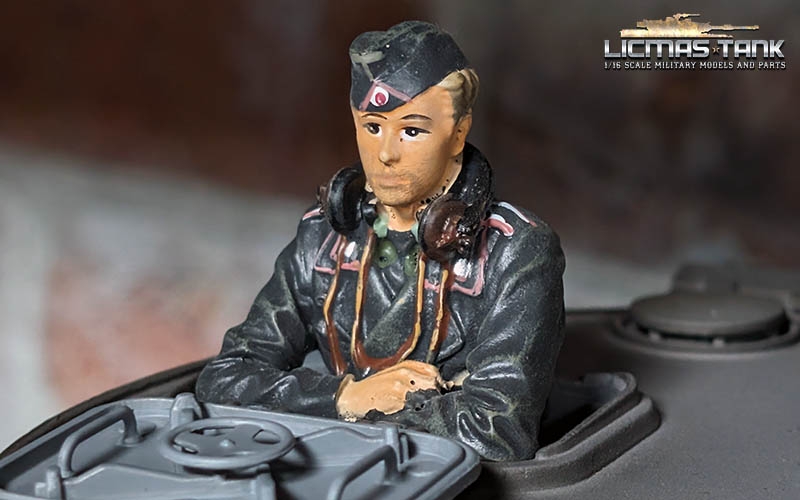Expand your RC tank model or diorama with the detailed 1/16 figure “Funker Fritz” of the German Wehrmacht from the Second World War. This hand-painted resin figure shows a tank soldier in a radio operator position and fits perfectly into all tank hatches.