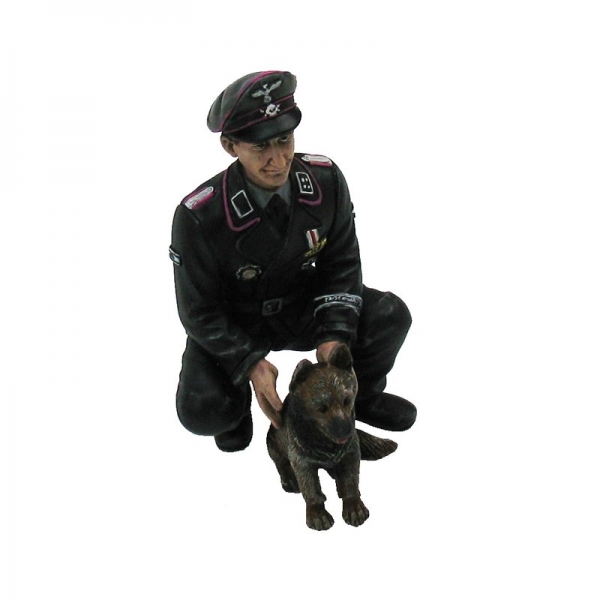 Original figure Colonel Otto Paetsch with dog. The figure can also be used for other tank models. Due to the hand painting each figure is unique.