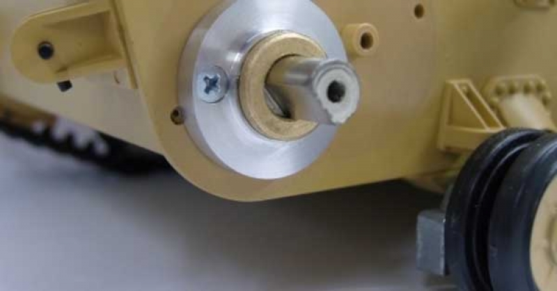 Two turned aluminum plates with sintered bearing bushes for additional support of the drive axles of the Panzer IV from Heng Long.
