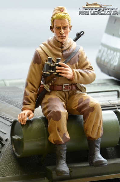 Figure Soldier WW2 Russian Scout with binoculars Tankrider Amobea Pattern brown 1:16