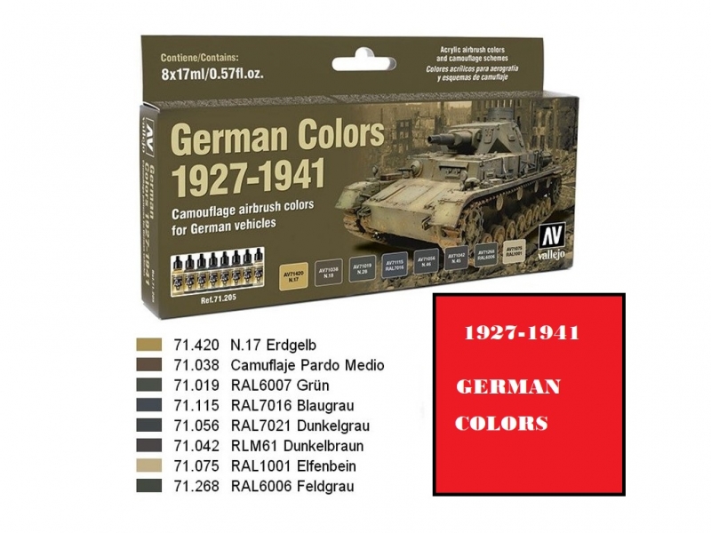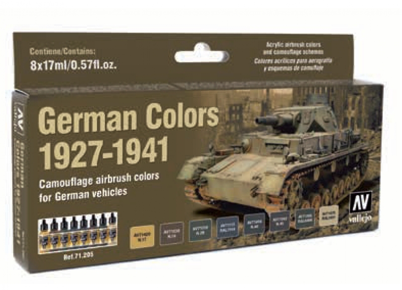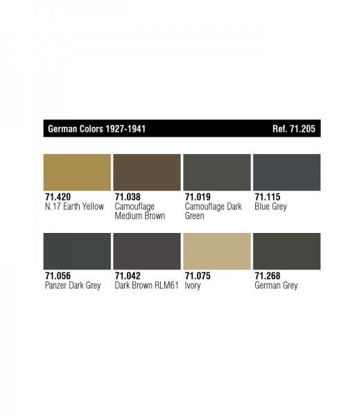 The set German Colors 1927-1941 contains 8 Model Air colors in 17 ml.