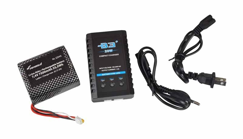Battery: Li-Ion, 2S, 7,4V, 7500mAh 15C, Softcase, XT30 connector LxWxH: 65x55x35mm, 284g