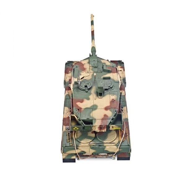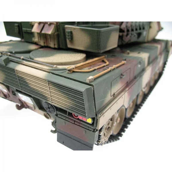 The RC Leopard Tank 2A6 IR is an impressive 1:16 scale replica of the world's most advanced main battle tank. With its authentic Mediterranean summer camouflage in an airbrushed design, high-quality metal components and a fully functional IR battle system, this model is a must-have for RC and military model enthusiasts.