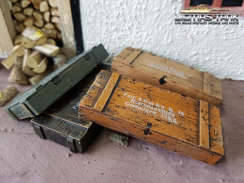 4 x Very detailed ammunition boxes of the Wehrmacht in wood effect.