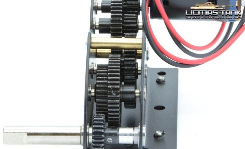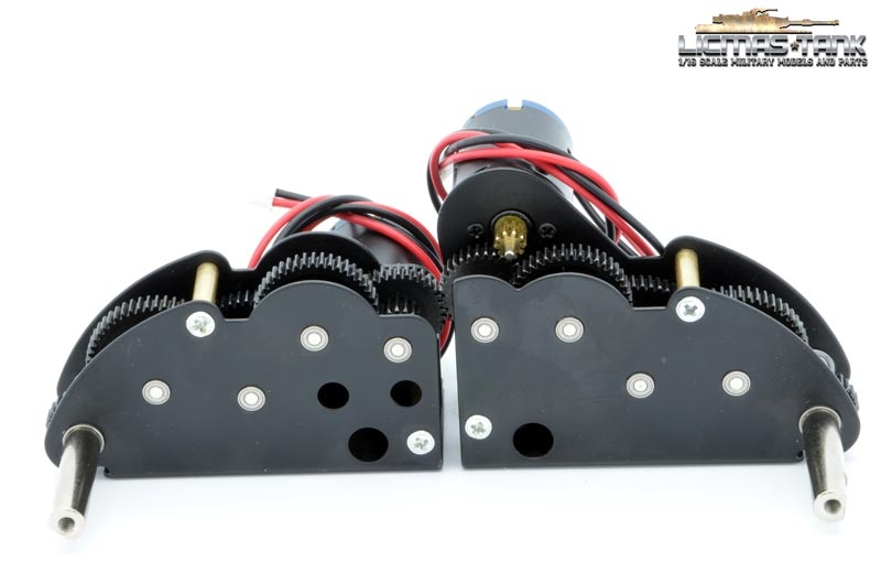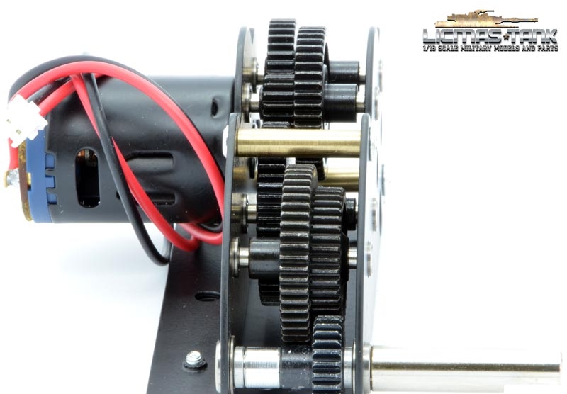 Ich habe den Walker Bulldog von dem Metallgetriebe (kein Stahl) auf dieses Stahlgetriebe umgerüstet. Es passt alles. Kabellängen sind gut. Die komplette Kugellagerung aller Getriebewellen macht eine soliden Eindrick. Das Getriebe hat eine Übersetzung von 89:1. Das heißt 89 Umdrehungen am Motor bedeutet eine Umdrehung am Treibrad. Das original Getriebe hat eine Übersetzung von 39:1. Der Walker Bulldog wird dadurch natürlich erheblich langsamer. Was aber meiner Meinung nach mehr zum Charakter eines Panzers passt. Original hat er mehr wie ein RC Auto reagiert. Die Kraft ist jetzt enorm. Außerdem lässt er sich nun feinfühliger Steuern. Ich kann die Getriebe/Motor Kombination empfehlen. JOA