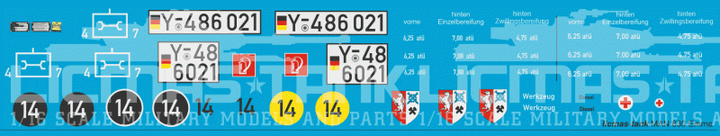 Der Decalsatz 1/16 Decalsatz Bundeswehr LKW MAN 630 Emma beinhaltet div. Beschriftungen für den LKW MAN 630 Emma im Maßstab 1/16 wie abgebildet