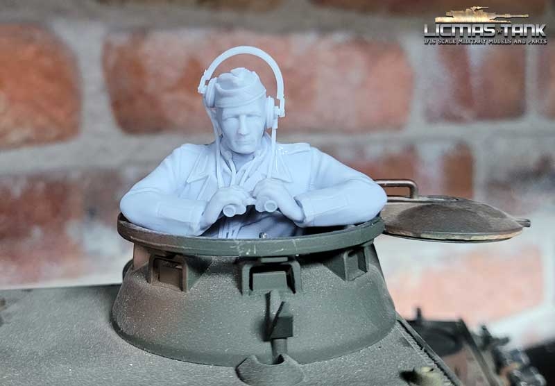 Die Figur ist einem echtem Panzersoldat (Kommandant) mit Kopfhörern im Turm,