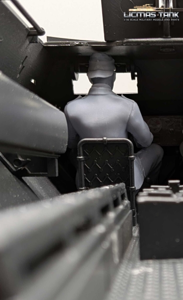 Diese Fahrerfigur aus Resin enthält einen detaillierten, unbemalten Fahrer – speziell passend für das Halbkettenfahrzeug Sd.Kfz. 251/1 Ausf. D im Maßstab 1:16.