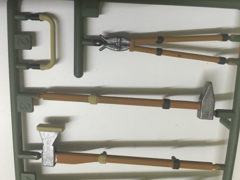 Werkzeug Set 1:16 aus Kunststoff mit Metallnachbildung Silber lackiert
